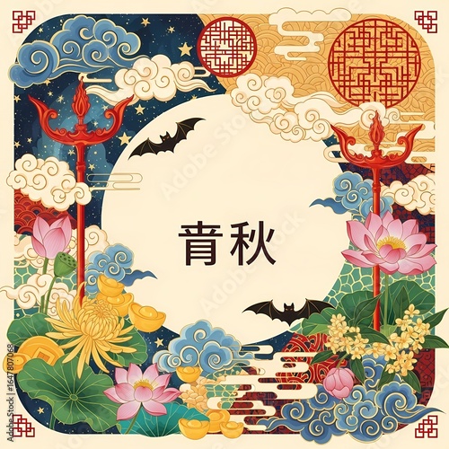 Mid-autumn festival design with traditional chinese elements and moon imagery for celebration and decoration