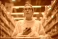 >Plakat>Curious young woman wearing eyeglasses in a supermarket, looking up at the shelves with a thoughtful expression while holding her mobile phone.
