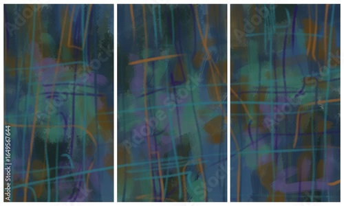 Modern interior triptych. The picture is painted by hand on a tablet.