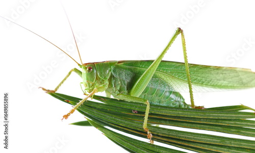 Fototapeta - Orthoptera-Tettigoniidae, bush cricket, "long-horned grasshoppers" isolated on white, side view