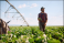 Fototapeta - Happy farmer with digital tablet walking through the crops.