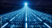 >Plakat>A high speed data highway of binary code flowing towards a futuristic city skyline. Represents information transfer, big data, internet speed, and modern technology.