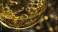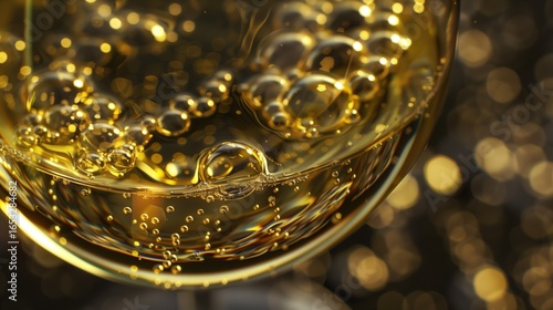Fototapeta - close-up macro shot of a glass filled with golden champagne
