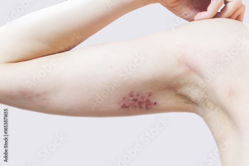 Fototapeta - Woman with shingles on the skin she feels very painful. High quality photo
