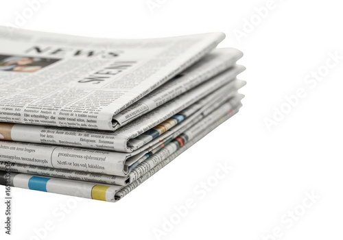 Fototapeta - A stack of newspapers isolated on transparent background, representing news and information
