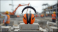 An old street lamp lights bright orange ear protection gear rests on concrete slabs at a construction site the autumn harvest in the old town.
