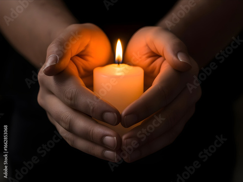 Fototapeta - Memorial light in hands – Trauer and Gedenken