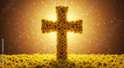 Fototapeta - Golden Floral Cross with Yellow Flowers – Meskel Ethiopian Orthodox Festival Celebration