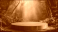 >Plakat>Elegant photo of jungle forest background with a wooden display podium, bathed in sunshine, ideal for organic cosmetics and food presentations.