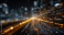 >Plakat>Speedy Sparks in Urban Landscape: A vibrant display of sparks streaks through the night, hinting at high speed and dynamic energy within a futuristic cityscape with blurred lights.