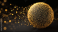 Stunning close-up of a glowing golden spherical particle cluster with shimme dust particles against a dark background