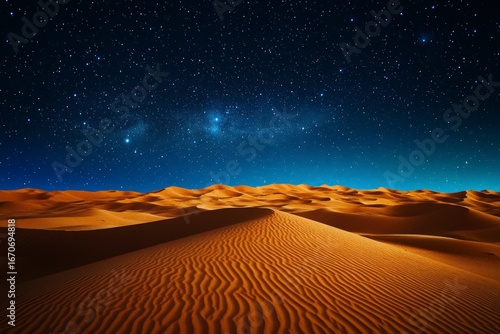 Fototapeta - Desert landscape with a starry sky above