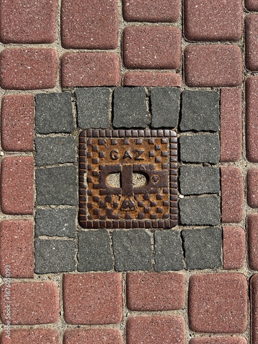 Fototapeta - Studzienka, rewizyjna, na czerwonym tle