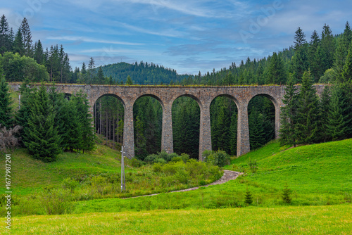 Fototapeta - Chmarossky viaduct bridge in Slovakia during a cloudy day