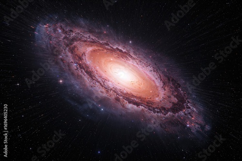 Fototapeta - Abstract 3D rendering of cosmic gamma ray burst paired with gravitational wave visualization