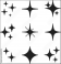Isolated sparkle icons, black glowing vector, minimal star symbol silhouette, outline sparkle effect symbol, shiny clean clipart, editable vector sparkle icon set