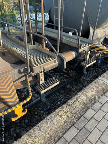 Fototapeta - pociąg towarowy i połączenie wagonów