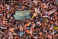 Rezerwat Przyrody "Nad Groblą" (Park Krajobrazowy "Chełmy").Kamień wśród jesiennych liści pokrywających ziemię.