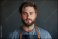 Portrait of a handsome man with a beard, wearing a denim shirt and apron, smiling.