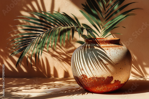Fototapeta - Tropikalna sceneria z liśćmi i wodą – tło dekoracyjne