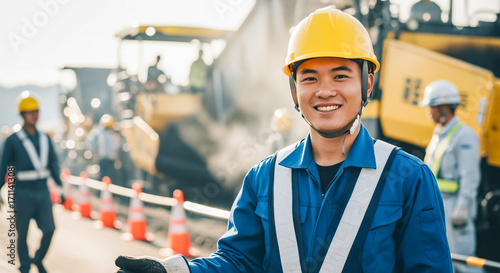 Fototapeta - 日本の道路建設現場で働くベトナム人男性