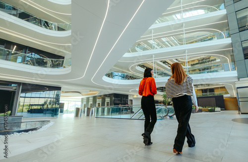 Fototapeta - Modern accounting firm lobby with people walking inside