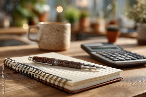 Fototapeta - Notes i długopis – detal do pracy i nauki w domu