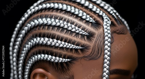 Stunning close-up silver box braids on natural dark skin hairstyle beauty african style culture fashion