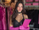 Uśmiechnięta kobieta w czarnej koronkowej bluzce i długich różowych rękawiczkach, trzyma neonowy notatnik, stojąc w różowym butiku z ubraniami.