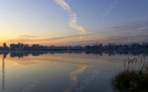 Fototapeta - Jesienny wschód słońca nad stawem, złota godzina. Czechowice - Dziedzice. Polska