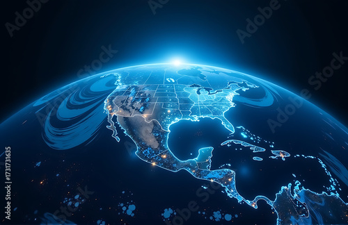 Fototapeta - stunning photograph earth radiantly lit within vibrant network glowing blue lines casting ethereal glow