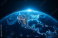 stunning photograph earth radiantly lit within vibrant network glowing blue lines casting ethereal glow
