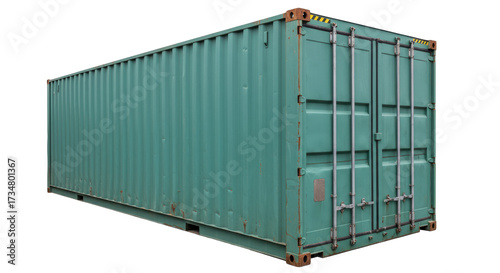 Fototapeta - Green shipping container isolated on transparent background, intermodal freight transport for global trade and logistics