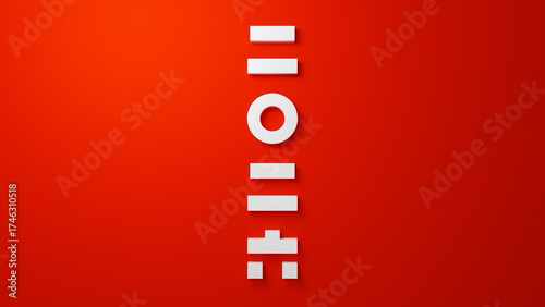 Fototapeta - 赤色背景に白い立体的な漢字で二〇二六の文字。2026年。俯瞰。3D(横長)