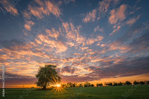 Fototapeta - Samotne drzewo na tle zachodu słońca