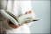 Young girl in white T-shirt reading opened book. Copy space. lifestyle and school concept