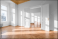 Empty room, flat with stucco ceiling , parquet floor and white walls