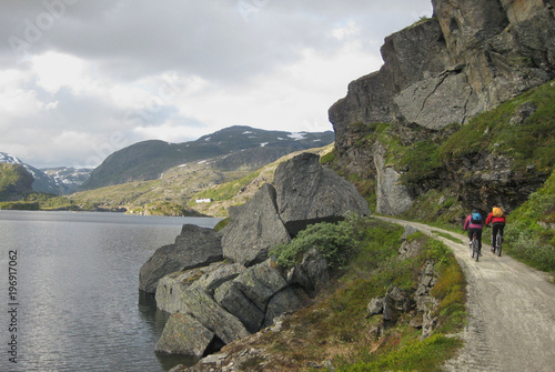 Fototapeta - Norwegia - słynny szlak rowerowy Rallarvegen (droga kolejowa) na płaskowyżu Hardangervidda