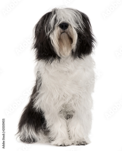 Fototapeta - Polish Lowland Sheepdog, sitting in front of white background