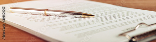Fototapeta - Pen lying on a contract or application form, wide angle view.