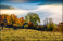 Fototapeta - autumn countryside with valley full of thick fog. gorgeous scenery at sunrise in mountainous area. view from the top of a hill