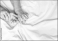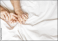 Couple having sex. Hand clutches grasps a white crumpled bed sheet in a hotel room, a sign of ecstasy, feeling of pleasure or orgasm