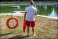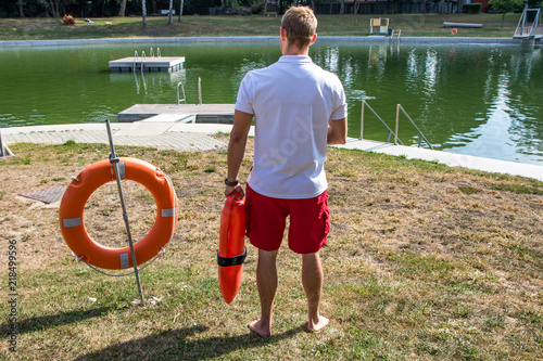 Fototapeta - Wasserwacht Mann an Ufer im Naturfreibad