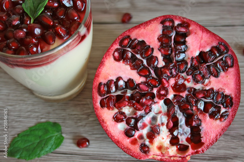 Fototapeta - Owoc granatu, kremowy deser z pestkami grantatu