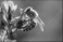 A honeybee flying towards a cluster of wildflowers, focusing on its fuzzy body and delicate wings in a well-lit frame
