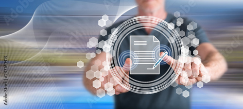 Man touching a smart contract concept
