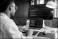 Fototapeta - Young african male programmer writing program code sitting at the workplace with three monitors in the office. Image focused on the screen