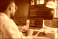 Young african male programmer writing program code sitting at the workplace with three monitors in the office. Image focused on the screen