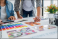 Fototapeta - Asian advertising designer creative start-up team discussing ideas in office.