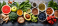Healthy food clean eating selection: fruit, vegetable, seeds, superfood, cereal, leaf vegetable on gray concrete background